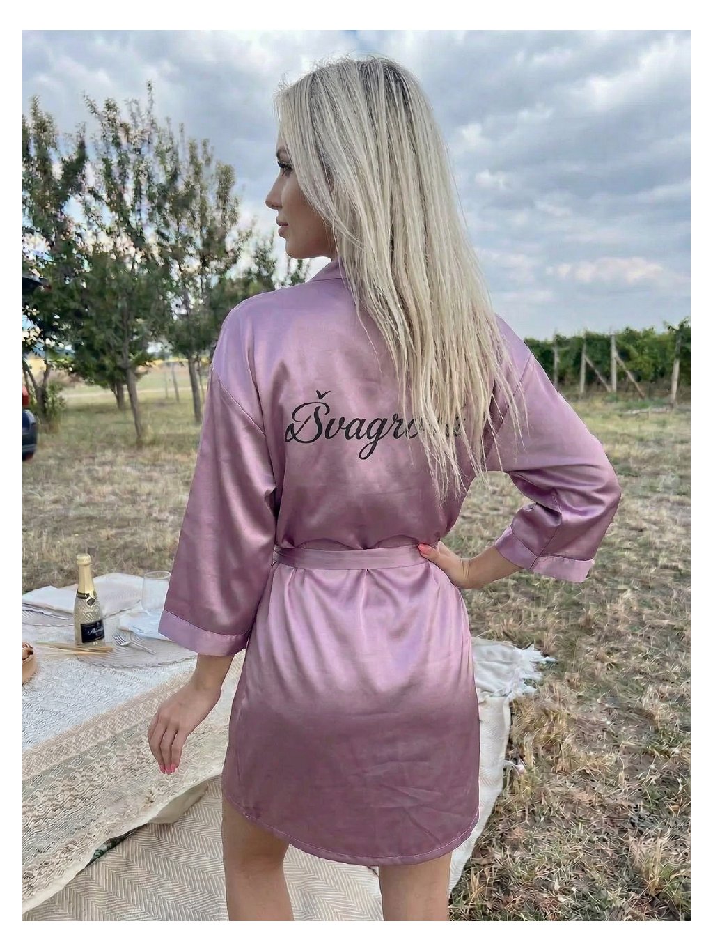 Mauve svatební župánek je jako dotek romantického snu, který přináší do tvého svatebního dne nádech kouzla a originality. Jeho jemný, pastelově růžovofialový odstín je nejen elegantní, ale také neuvěřitelně všestranný, ladí s každým stylem a náladou. Tento župánek, vyrobený z hebké a vzdušné látky, je navržen tak, aby tě obklopil pohodlím a zároveň přidal sofistikovaný nádech.